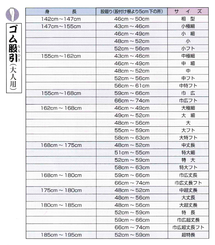 ※股廻りの寸法は、股付け根より 5cm 下の所の寸法です。