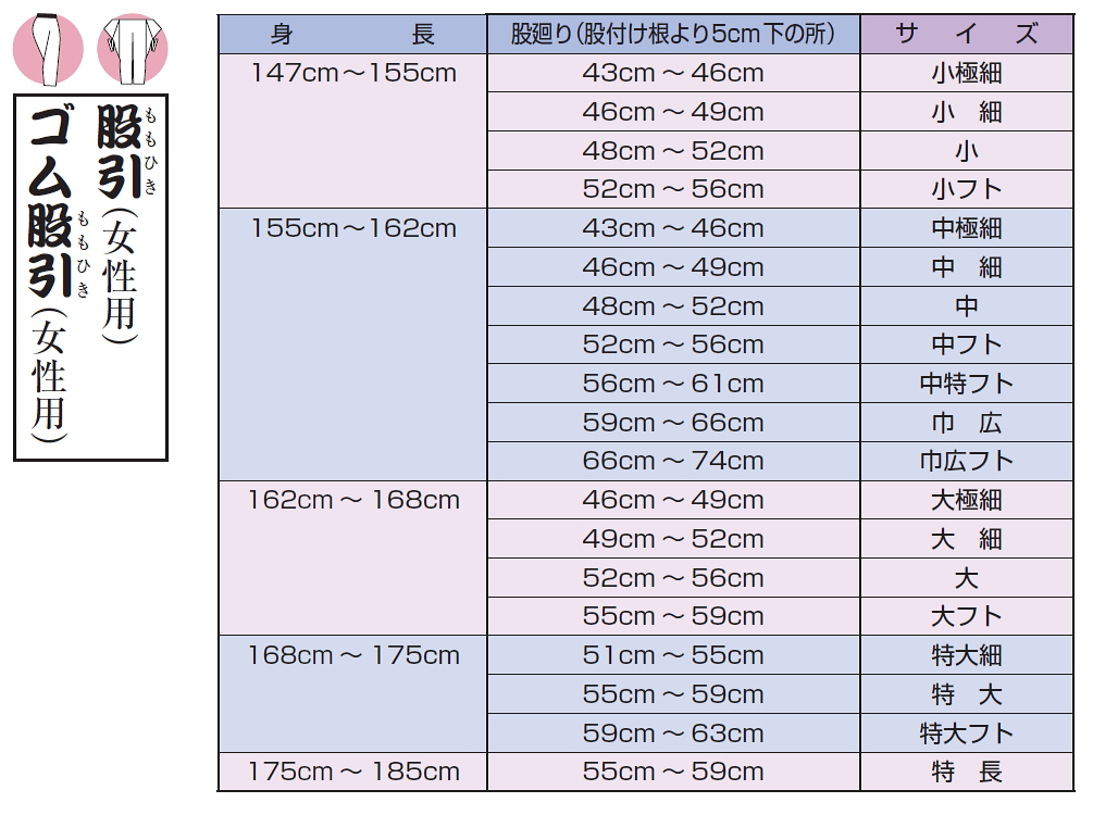 ※股廻りの寸法は、股付け根より 5cm 下の所の寸法です。