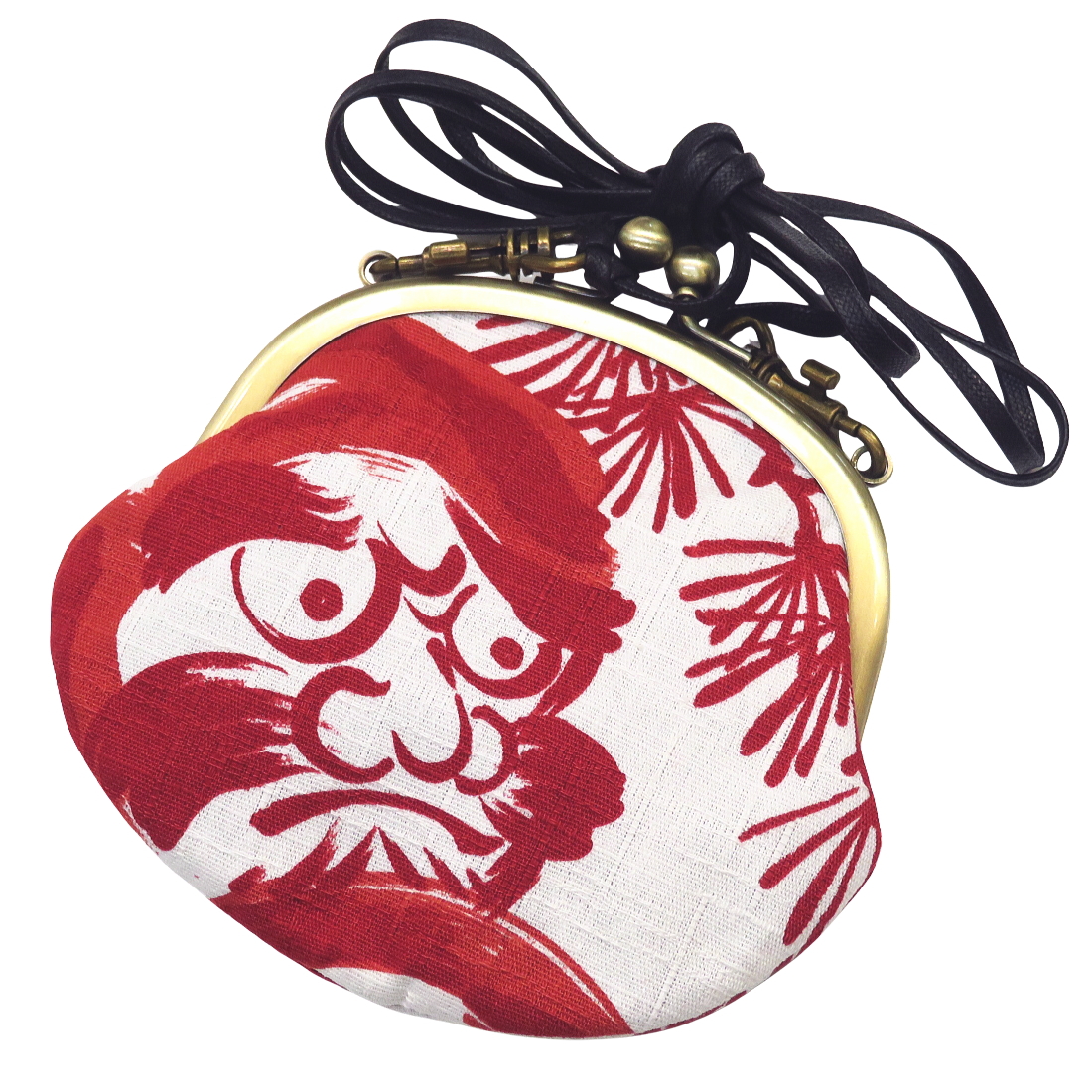 • がま口ショルダー 3.3寸 「福だるまと松・白赤」小銭・小物入れ・日本製