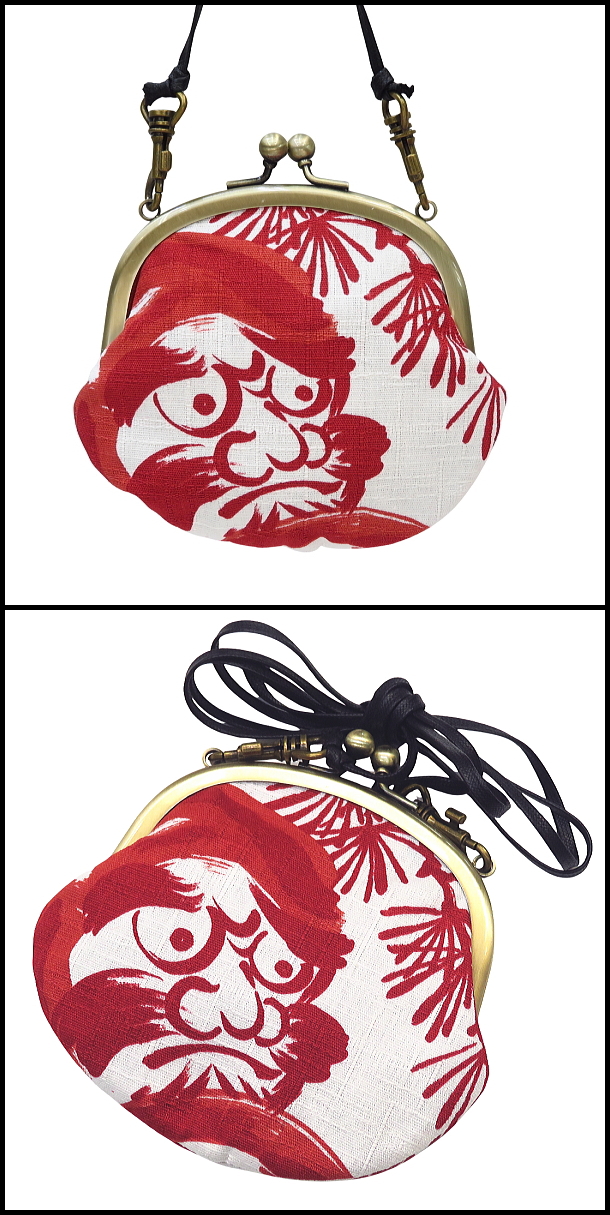 がま口ショルダー 3.3寸 「福だるまと松・白赤」小銭・小物入れ・日本製