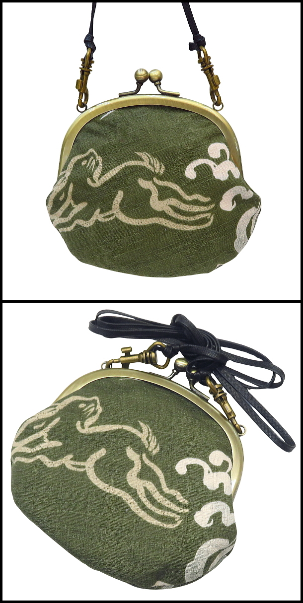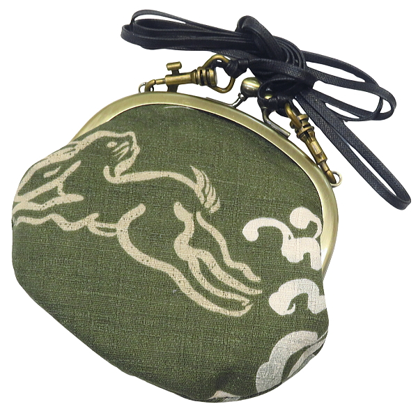 がま口ショルダー 3.3寸 「波うさぎ・渋抹茶緑」小銭・小物入れ・日本製