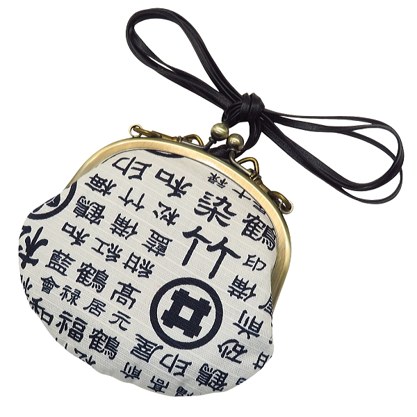 がま口ショルダー 3.3寸 「漢字と家紋・白」小銭・小物入れ・日本製