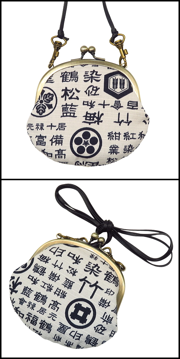 • がま口ショルダー 3.3寸 「漢字と家紋・白」小銭・小物入れ・日本製