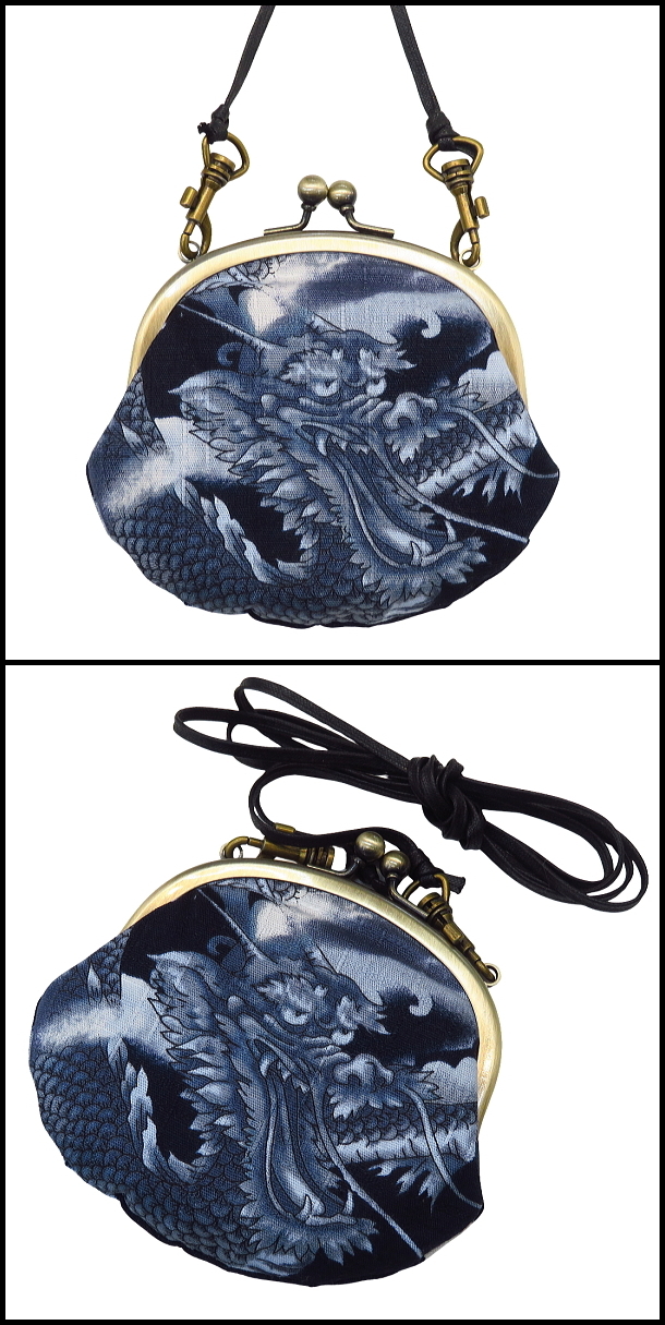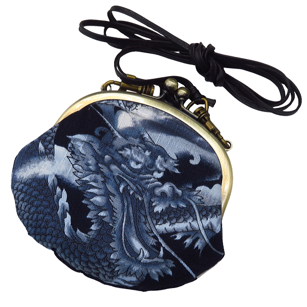 • がま口ショルダー 3.3寸 「雲龍・紺」小銭・小物入れ・日本製