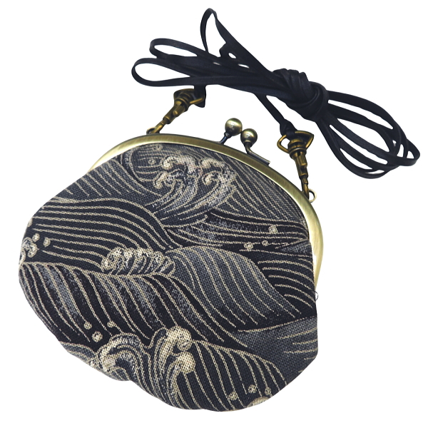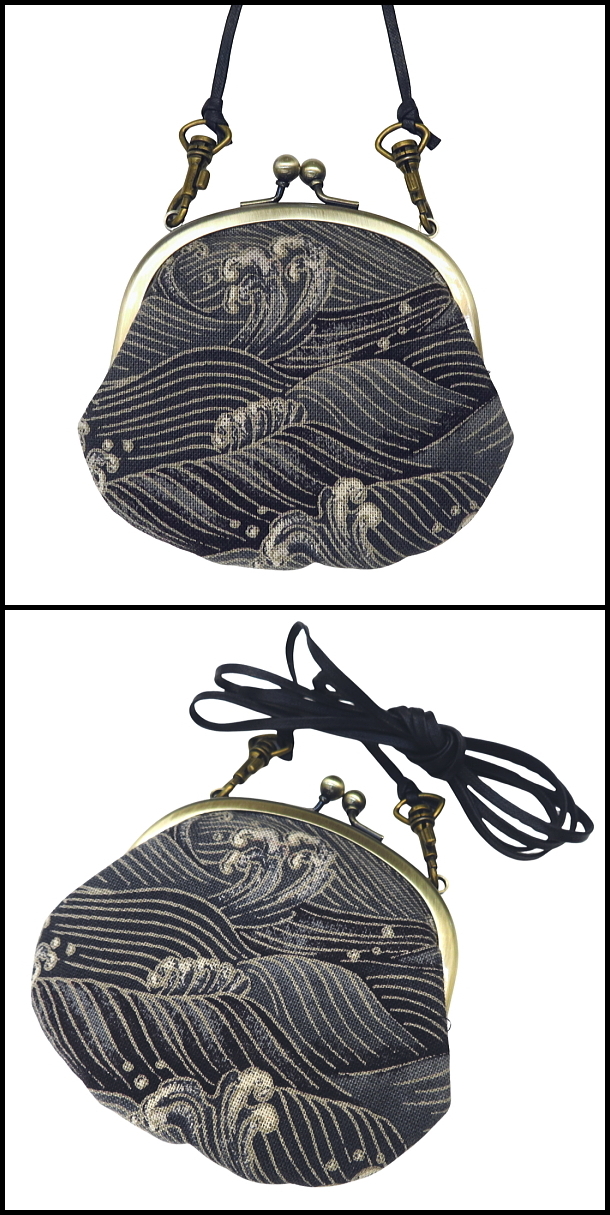 • がま口ショルダー 3.3寸 「荒波紋様・グレー」小銭・小物入れ・日本製