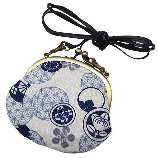 • がま口ショルダー 3.3寸 「丸文様・白」小銭・小物入れ・日本製