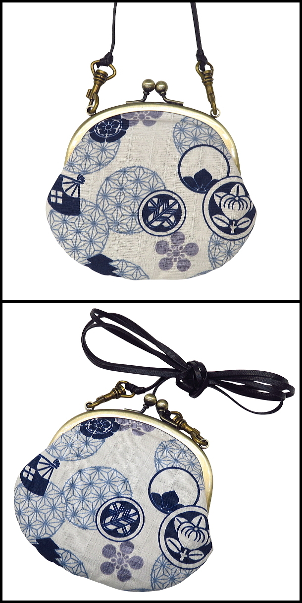 がま口ショルダー 3.3寸 「丸文様・白」小銭・小物入れ・日本製