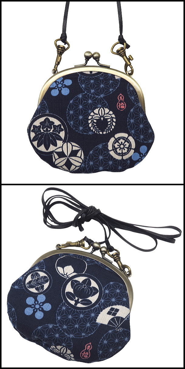 がま口ショルダー 3.3寸 「丸文様・紺」小銭・小物入れ・日本製
