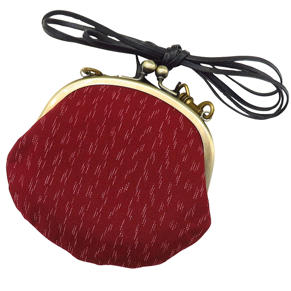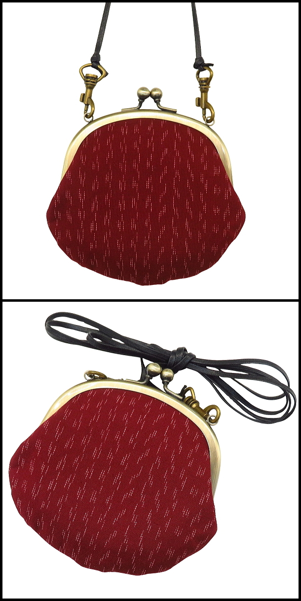 • がま口ショルダー 3.3寸 「絣模様・エンジ」小銭・小物入れ・日本製