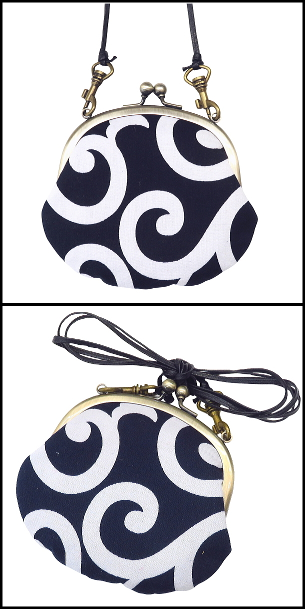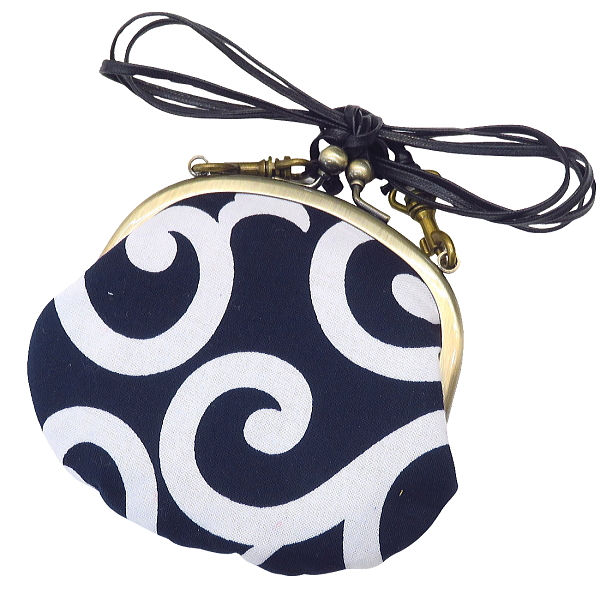 がま口ショルダー 3.3寸 「大唐草・紺」小銭・小物入れ・日本製