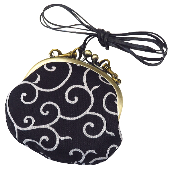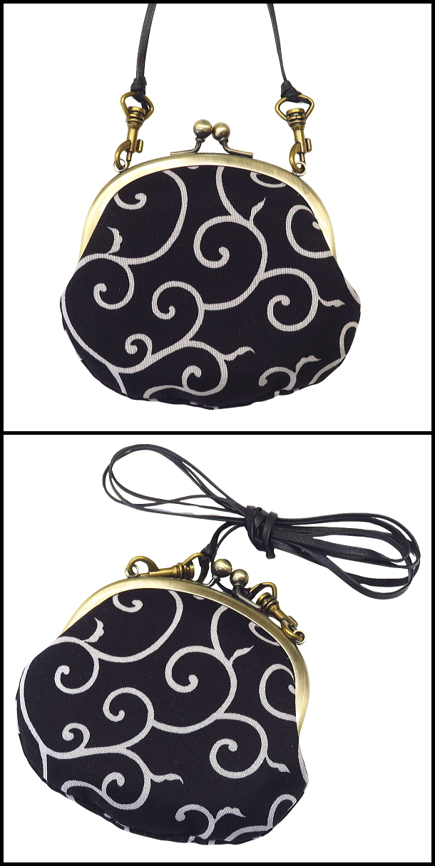 • がま口ショルダー 3.3寸 「唐草・からくさ・黒」小銭・小物入れ・日本製