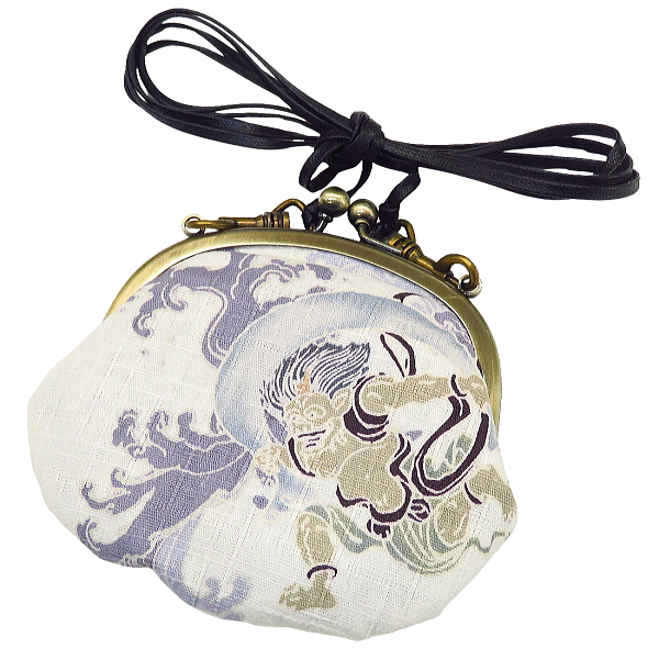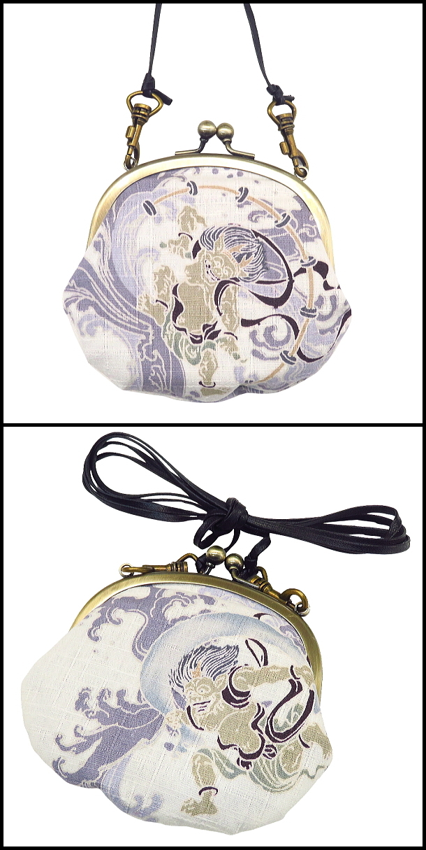 • がま口ショルダー 3.3寸 「風神雷神・白系」小銭・小物入れ・日本製