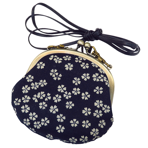がま口ショルダー 3.3寸 「さくら・桜・藍調」小銭・小物入れ・日本製