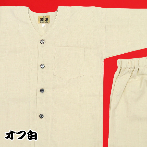【送料無料】義若のむら染め無地(オフ白)4号サイズ(120)子供鯉口シャツ上下組 ※