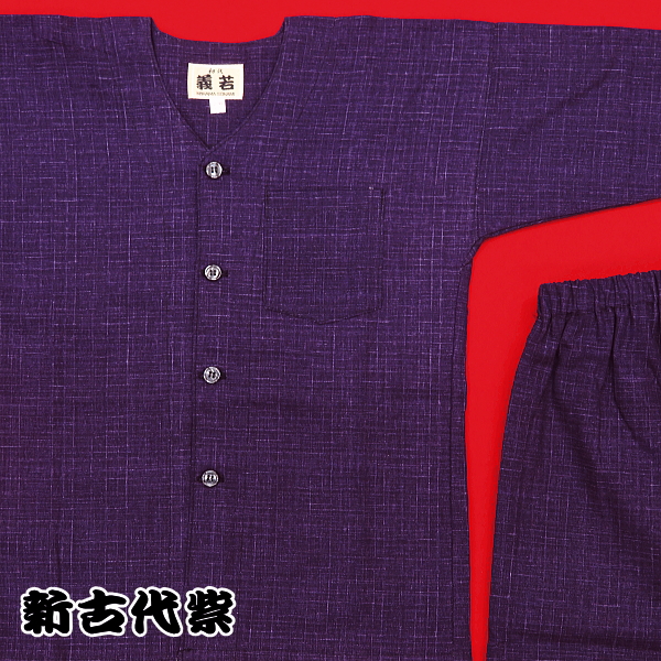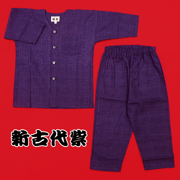 【送料無料】義若のむら染め無地(新古代紫)5号サイズ(130)子供鯉口シャツ上下組 ※
