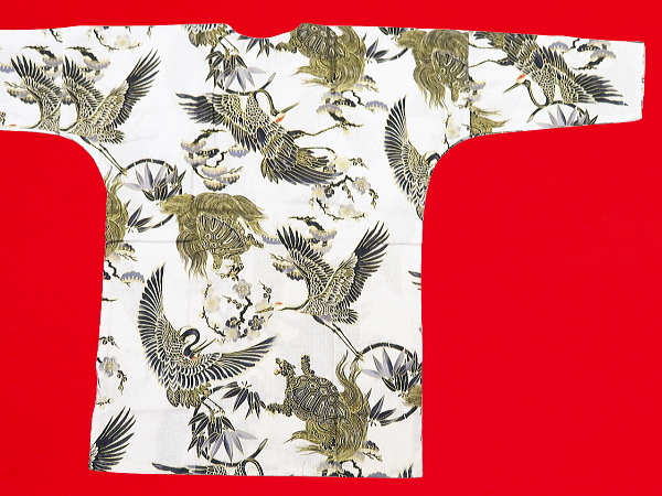 【送料無料】金彩鶴亀(白金)中サイズ(M) 大人鯉口シャツ単品 ※