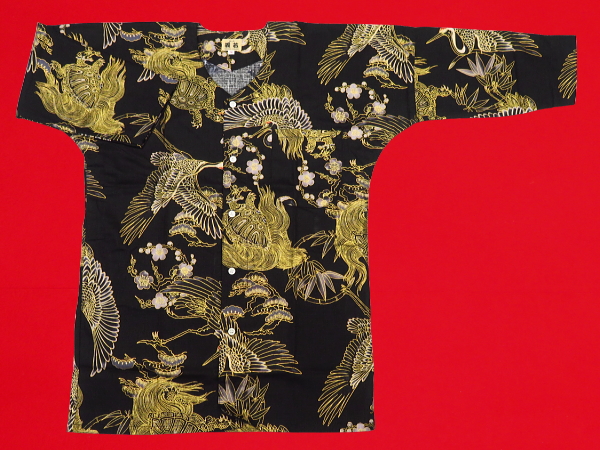 【送料無料】金彩鶴亀(黒金)超巾広サイズ(4L) 大人鯉口シャツ単品 ※