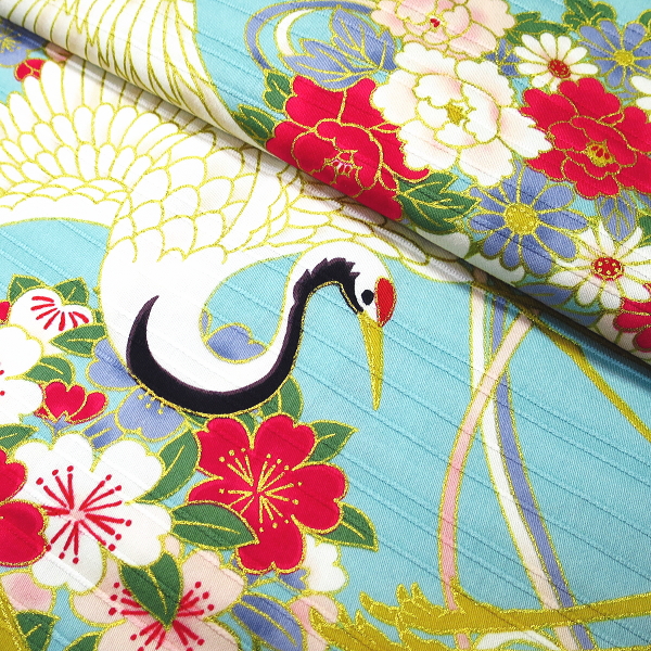 金彩鶴と久寿玉(浅葱色・水色)巾広サイズ(3L)股引き ※