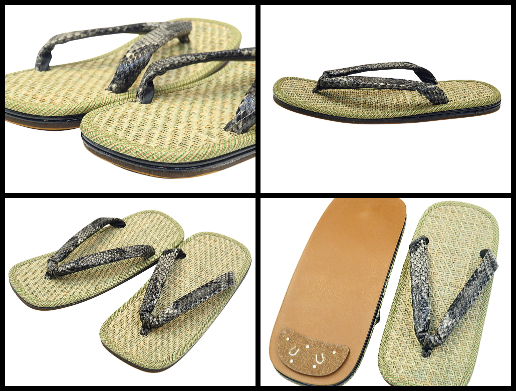 雪駄 パナマ黒茶・ヘビ柄鼻緒(黒)ライト底 LLサイズ(9寸:26.5cm〜28cmの方に最適) 日本製 セッタ・せった