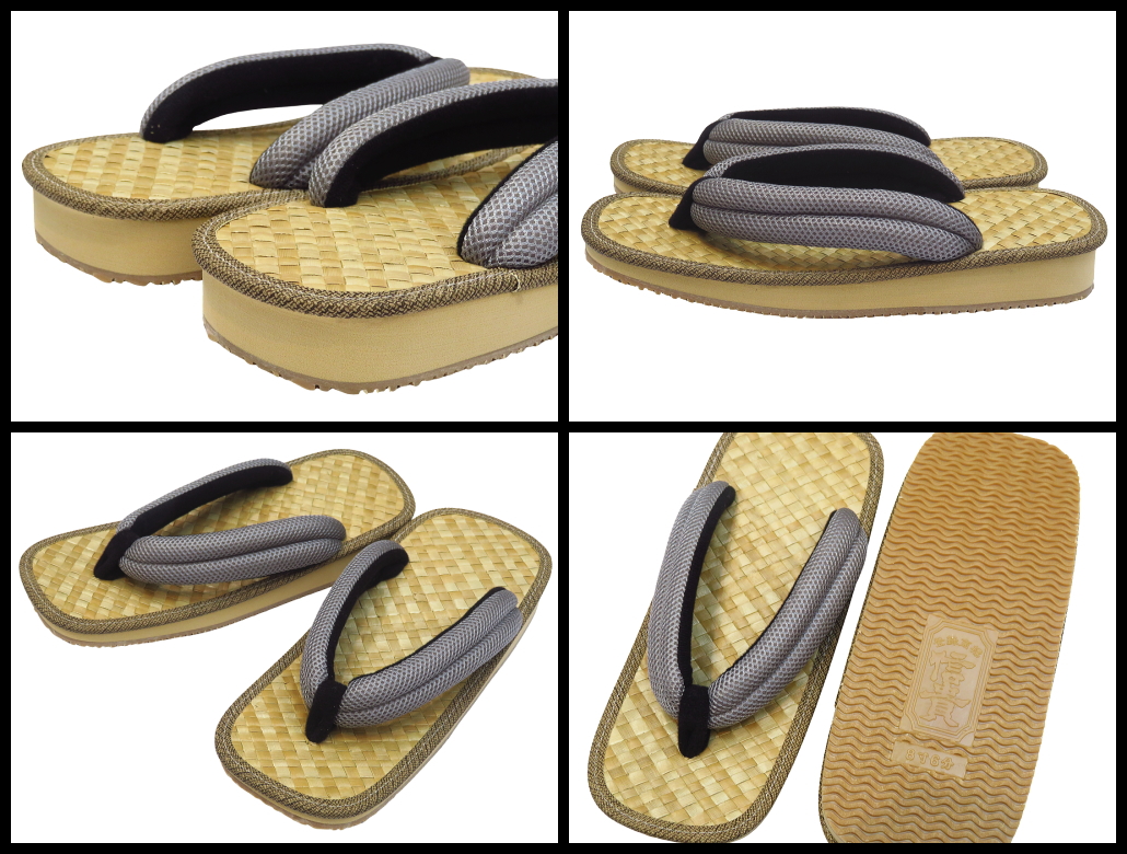 【送料無料】雪駄 竹アジロ・メッシュ鼻緒・グレー 茶アメ底 Lサイズ(8寸6分:26〜27cmの方に最適) 日本製 セッタ・せった