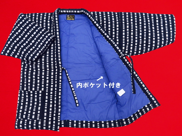 【送料無料】本場久留米!綿入れ半纏!モダン縞ブロック(紺) 男性用フリーサイズ 日本製