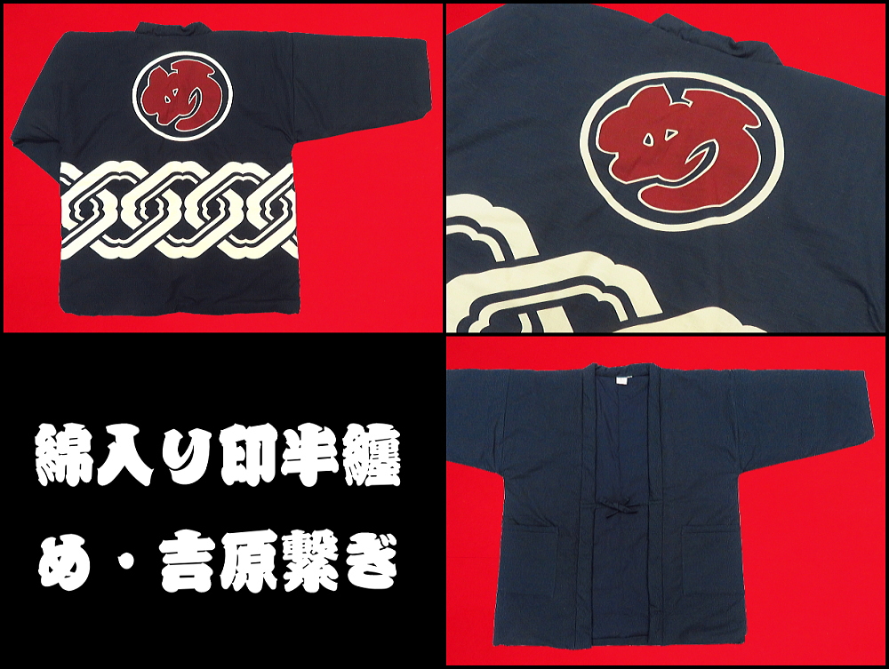 【送料無料】綿入り印袢纏!め組・吉原繋ぎ(紺)フリーサイズ