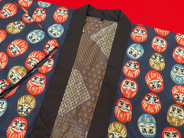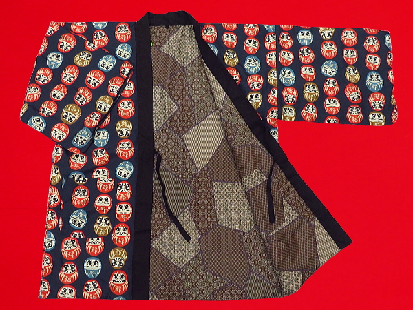 【送料無料】アンティーク和柄!綿入れ半纏リバーシブル(達磨づくし 紺)男性用フリーサイズ