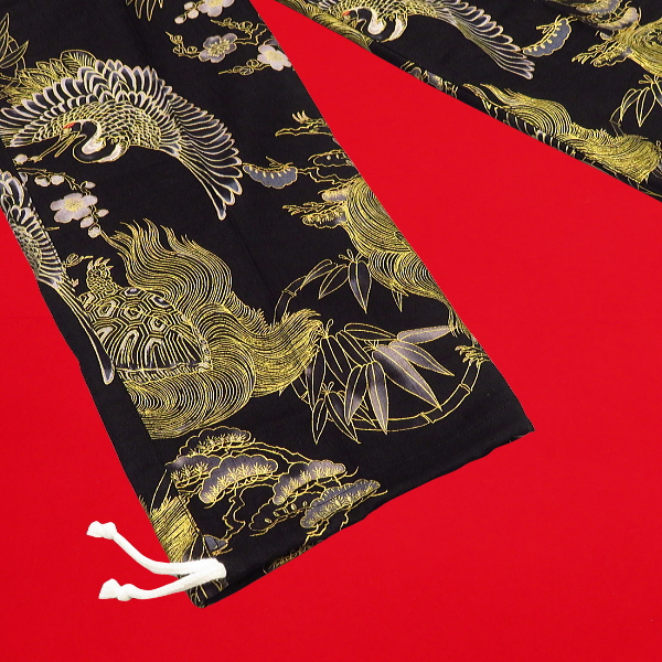 【送料無料】金彩鶴亀(黒金)中サイズ(M) 和柄ズボン ※