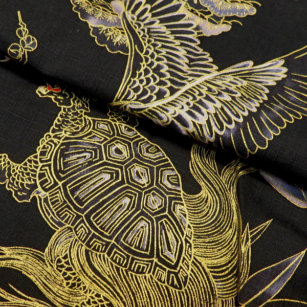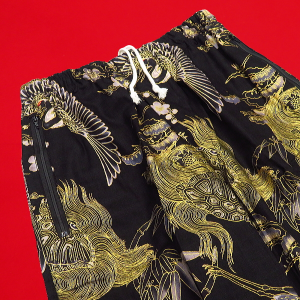 【送料無料】金彩鶴亀(黒金)特大サイズ(LL) 和柄ズボン ※