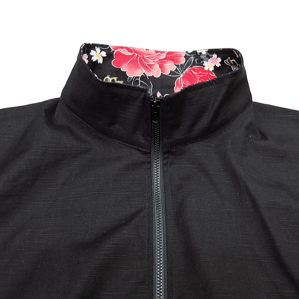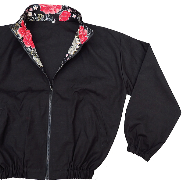祭・綿紬ジャンバー 黒×唐獅子牡丹(黒赤)Mサイズ 義若のジャンバー・ブルゾン