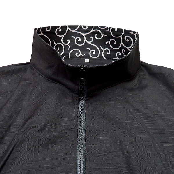 祭・綿紬ジャンバー 黒×唐草(黒)LLサイズ 義若のジャンバー・ブルゾン