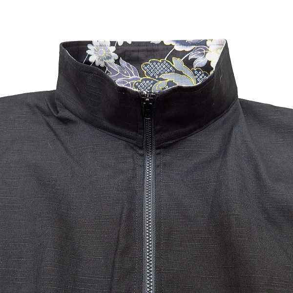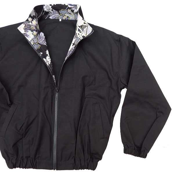 • 祭・綿紬ジャンバー 黒×牡丹と桜(黒)LLサイズ 義若のジャンバー・ブルゾン